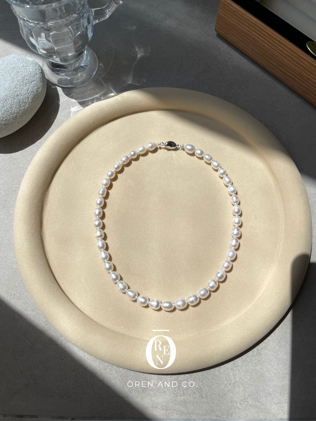 每一顆天然貝珠,都有其獨特的螺紋、色澤與大小。我們細心挑選,將形態最為和諧的珍珠串聯成鍊。