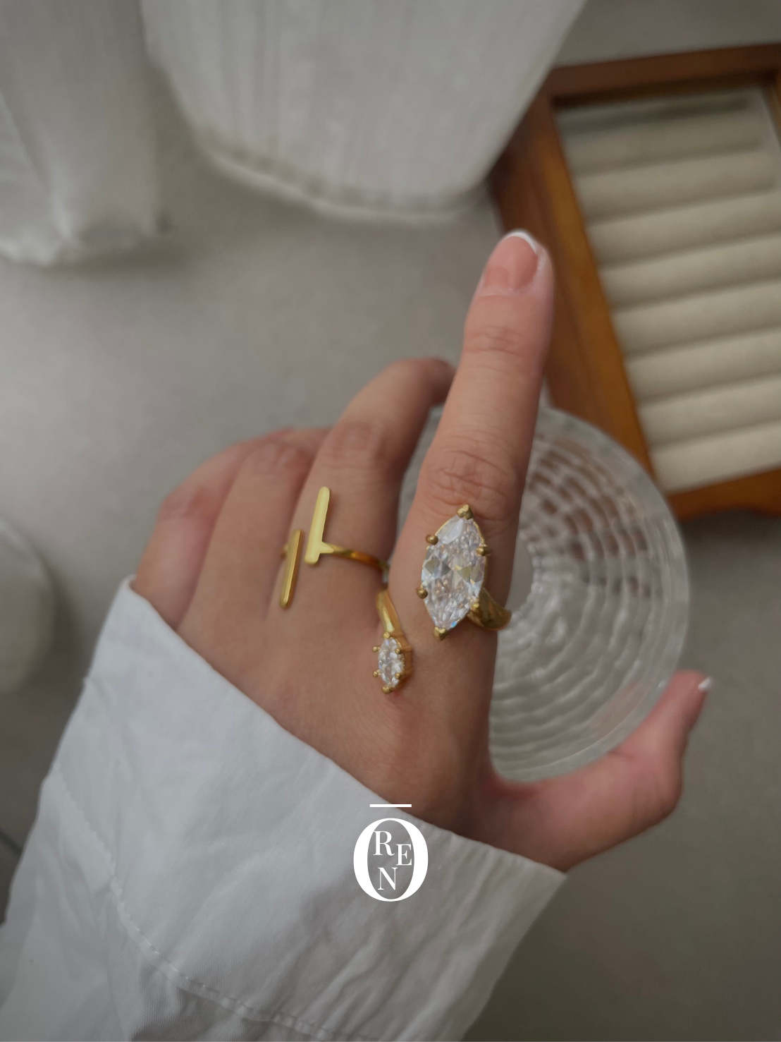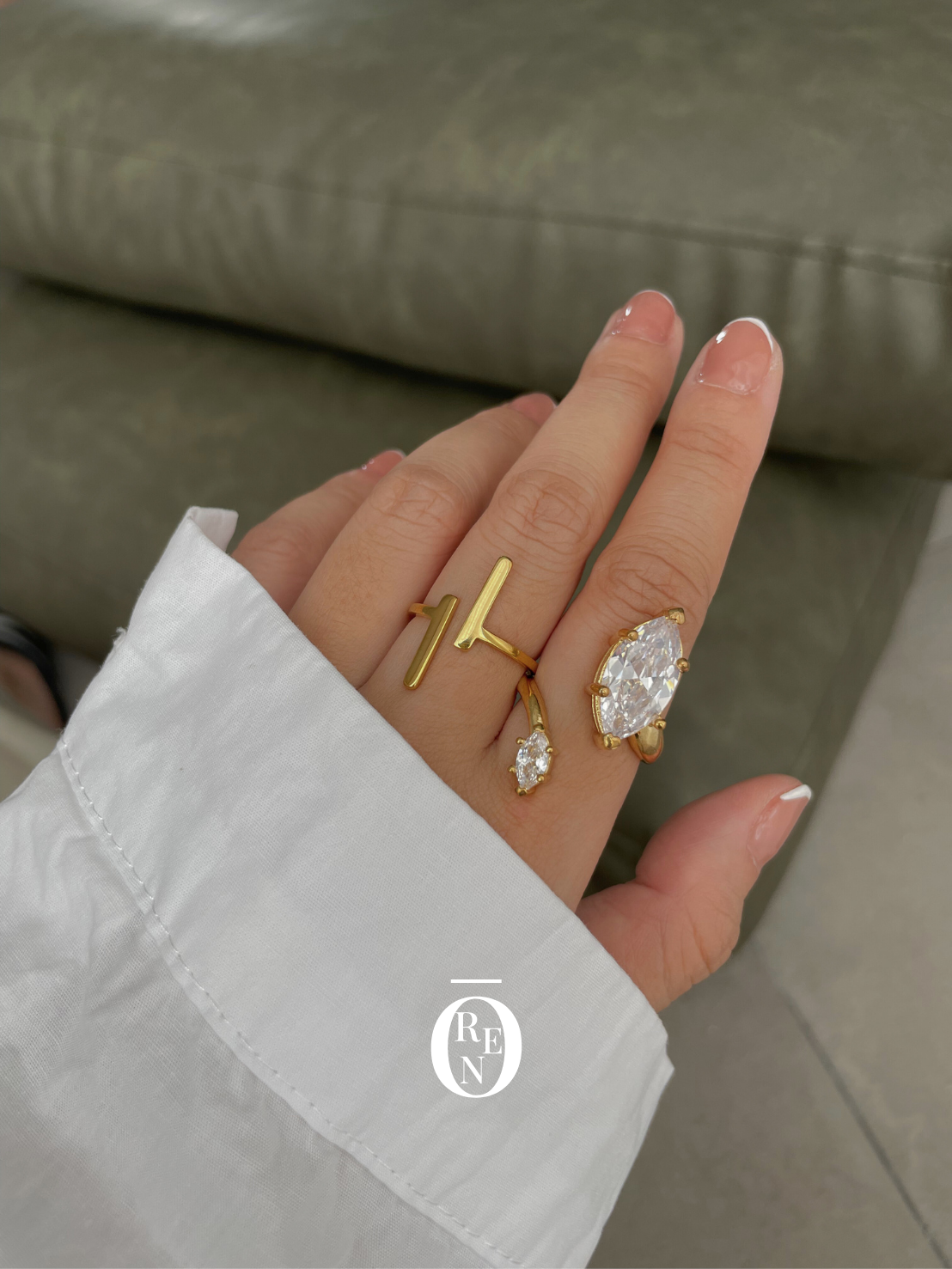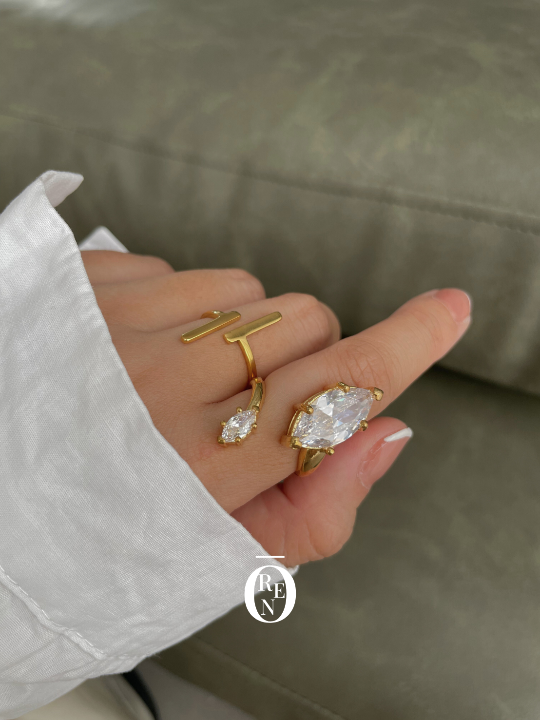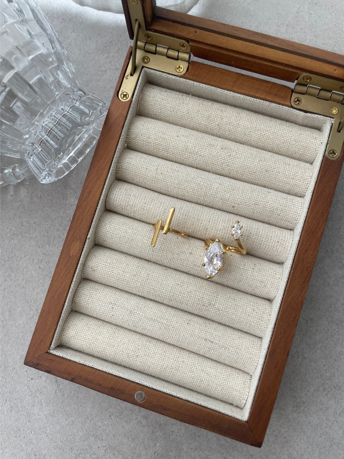不對稱鋯石開口戒指|黃銅|開口式