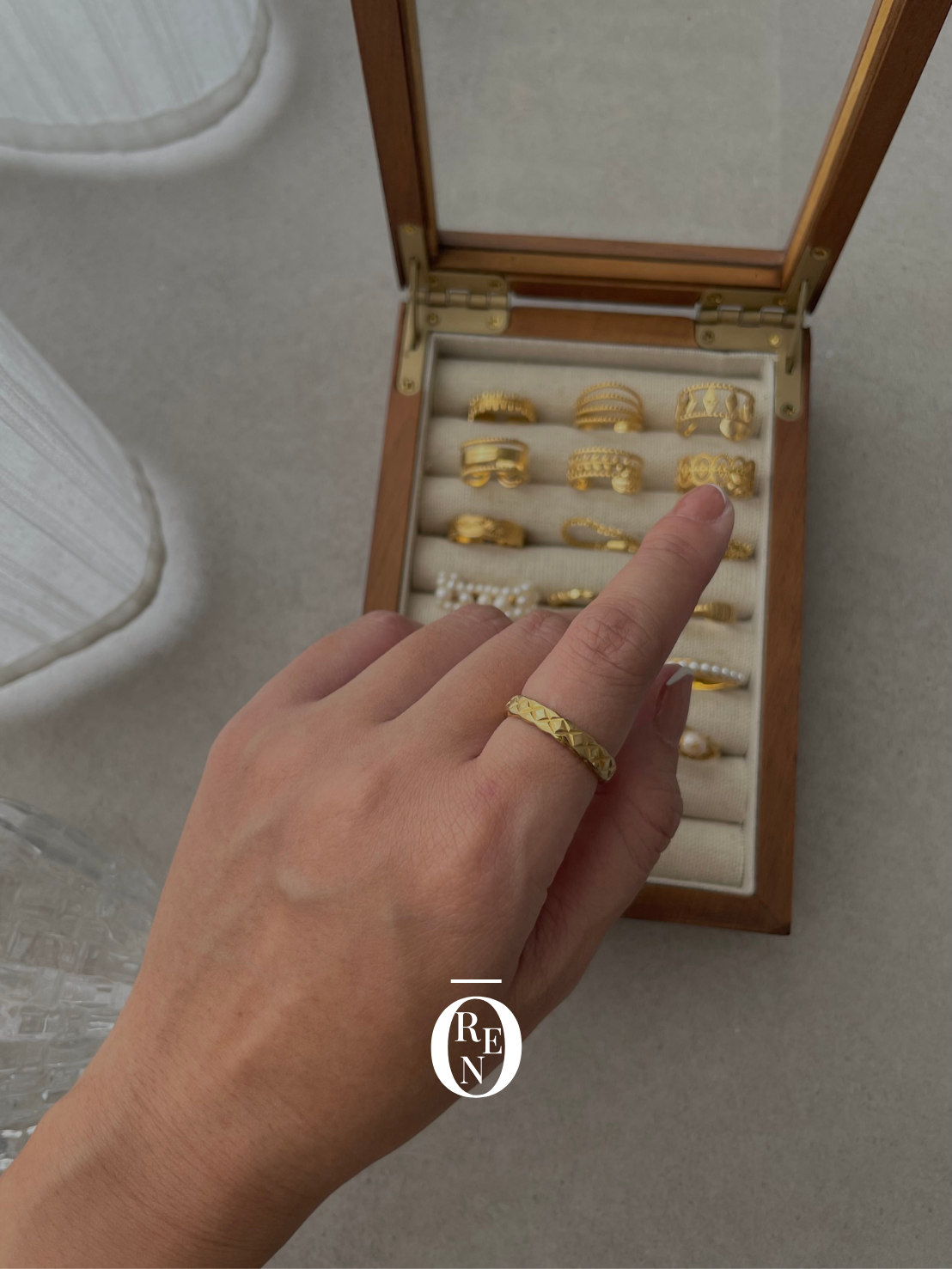 復古菱格紋戒指|黃銅
