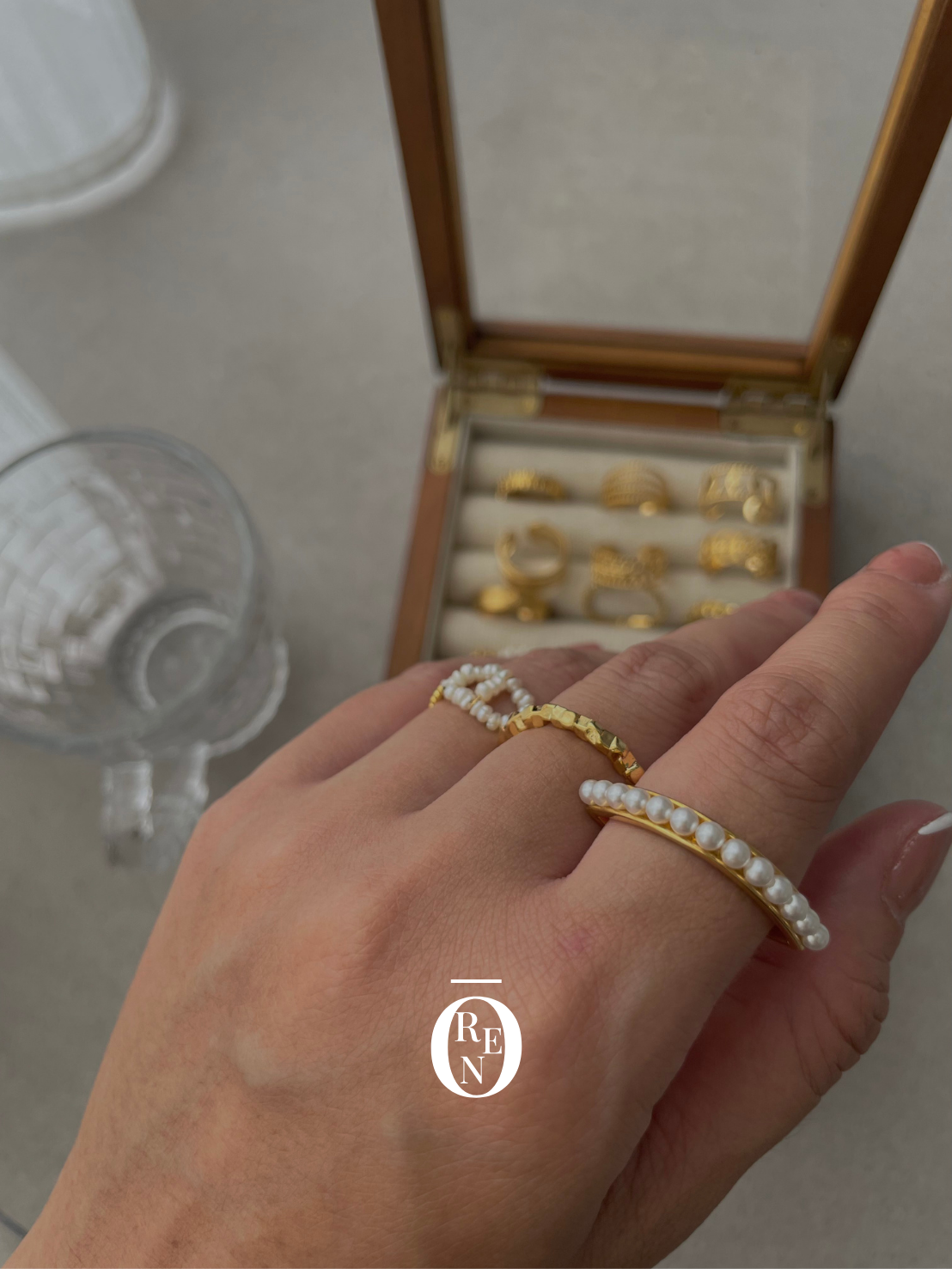 天然貝珠戒指|黃銅